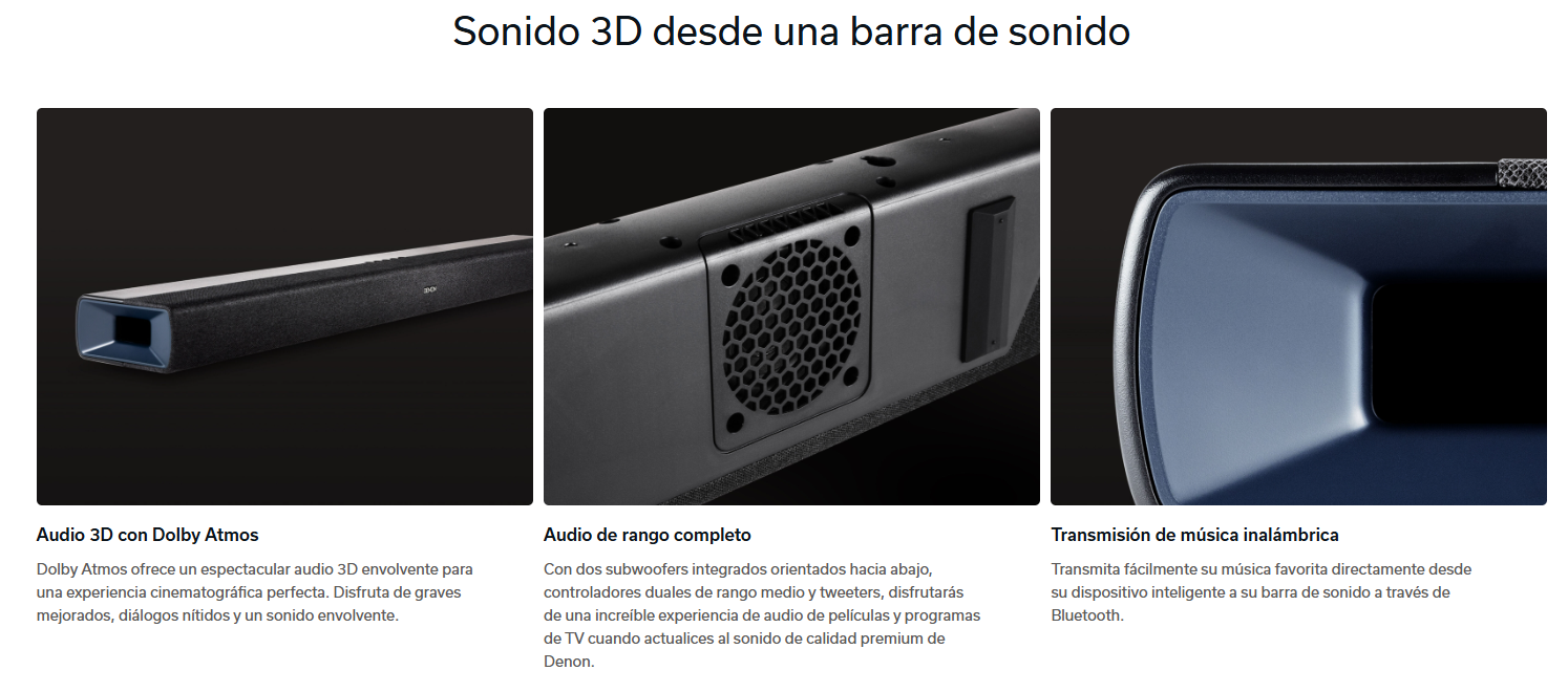 Con dos subwoofers integrados orientados hacia abajo, controladores duales de rango medio y tweeters, disfrutarás de una increíble experiencia de audio de películas y programas de TV cuando actualices al sonido de calidad premium de Denon.